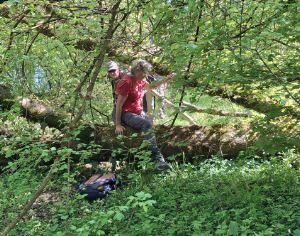 Quelques arbres tombés nous obligerons à faire des acrobaties. Une couleuvre qui se dorait au soleil au milieu du chemin s'enfuit à notre approche.