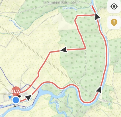 Petit retour en arrière pour trouver un chemin praticable et s'éloigner de la Saône sans pour autant traverser la Vingeanne. Par endroit les sangliers ont bien défoncé le terrain et l'humidité résiduelle nous oblige à quelques petits détours.