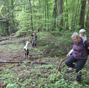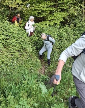 Retour dans le bois par une sente bien détrempée mais où le muguet abonde...