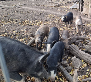 Un élévage de cochon en liberté nous permet d'apercevoir quelques porcelets curieux qui viennent nous voir.