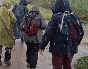 Nous quittons les bords de l'eau pour rejoindre notre lieu de pause sous un temps qui commence à changer... La petite pluie fait son apparition.