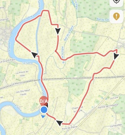 C'est en longeant la Saône, où de nombreux pêcheurs s'adonnent à leur passion, que nous débutons notre parcours. Passage sous la ligne du TGV, avant de quitter la rivière et d'arriver à l'écluse