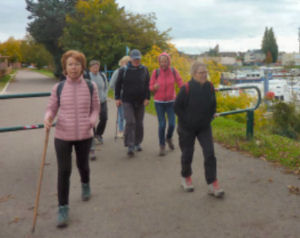Nous le traversons et arrivons à Losne. Toujours aussi agréable et paisible de randonner au bord de l'eau, le rythme et les conversations sont soutenus. Notre nouvelle recrue est parfaitement intégrée.