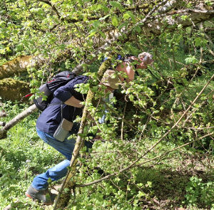 Quelques arbres tombés nous obligerons à faire des acrobaties. Une couleuvre qui se dorait au soleil au milieu du chemin s'enfuit à notre approche.