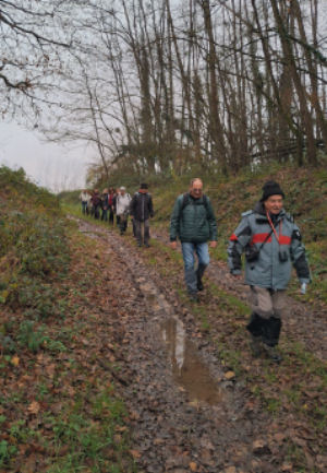 Dès le départ nous rencontrons des chemins forts boueux et bien glissants. Ce n'est que dans les bois que la marche devient plus facile