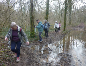 C'est lorsque que nous entrons dans le bois que nous rencontrons des énormes flaques qui nous barrent le chemin.