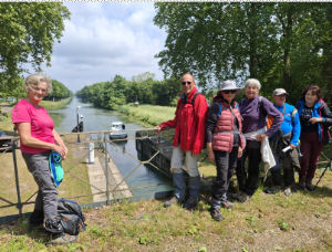 Nous prenons un petit chemin pour longer le canal de la Saône jusqu'à Heuilley. Petite pause dans ce village sur une large table qui permet de nous asseoir tous ensemble.