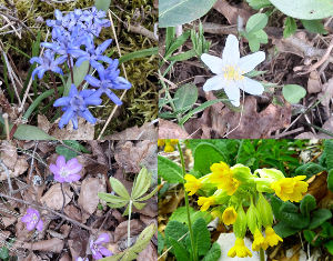 Dès l'entrée en forêt nous pouvons admirer les myriades de fleurs printanières qui parsèment le sol.