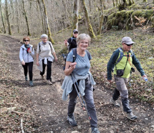 Soleil voilé et vent du sud assez fort au départ de notre balade. Nous quittons vite Savigny. Aujourd'hui les chemins sont bien secs cela change ...