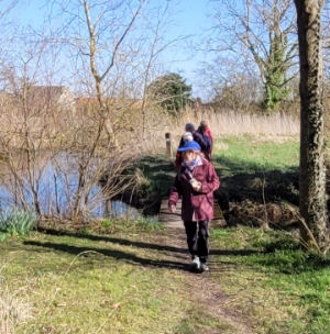 Nous avons vu un petit écureuil faire un petit bout de chemin devant nous, un papillon nous a suivi sur quelques mètres avant de faire une pause sur des violettes.